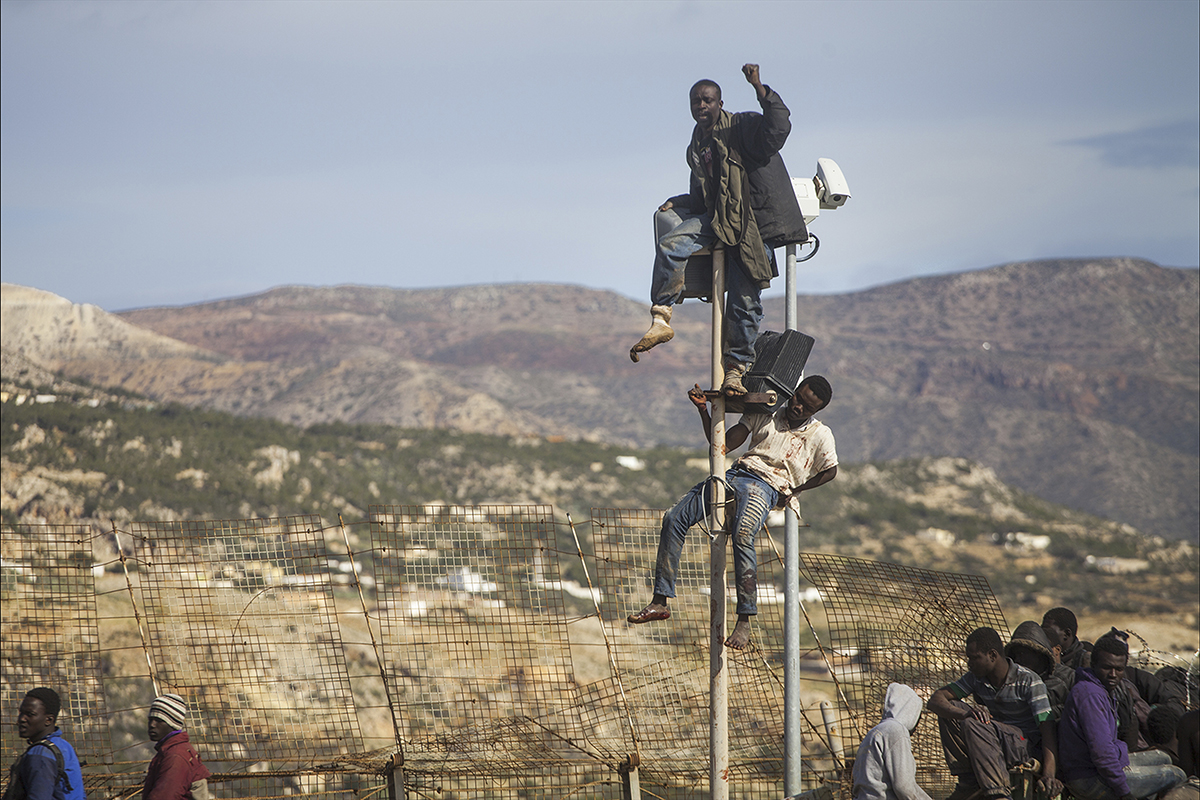 Este grupo de costamarfileños resiste sobre la valla mas de 18 horas para evitar ser devueltos en caliente. Pese a la gravedad de sus heridas todos fueron devueltos al caer la noche