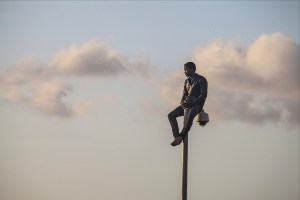 Tras el salto en el que entraron mas de 450 personas, Ibrahim, camerunes de 27 años queda encaramado en una farola. Fue devuelto en caliente minutos mas tarde.