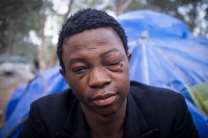 Desde el monte Gurugu, Sami asegura que fue la policia española quien le golpeo en la cara. Despues de los golpes fue arrestado y devuleto a Marruecos.